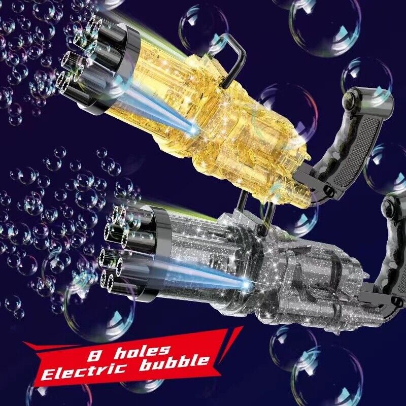 Gatling-Style Extravaganza: Experience the thrill of a bubble-filled Gatling-style spectacle. Our Gatling Bubble Machine with Lights takes bubble fun to a whole new level, inspired by the iconic Gatling gun design for a playful and exciting twist.